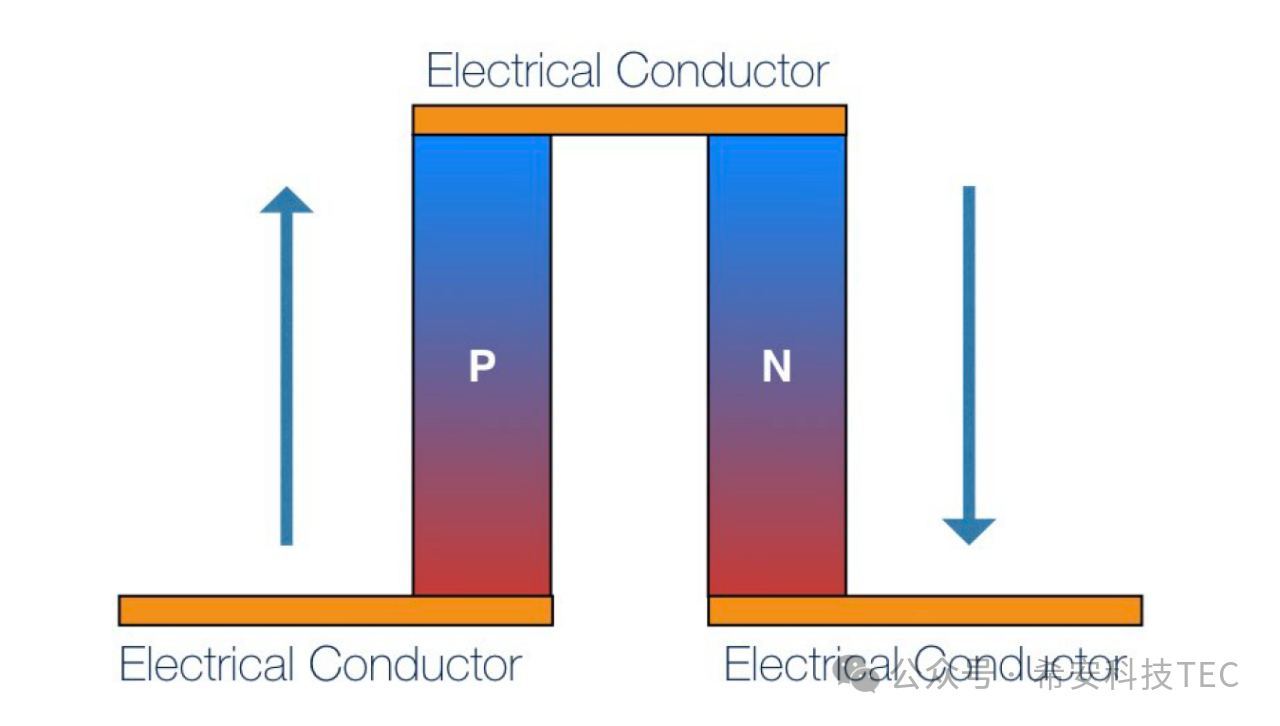 जेव्हा थेट विद्युत प्रवाह थर्मोकूपलमधून जातो तेव्हा पी-टाइप आणि एन-टाइप सेमीकंडक्टर ग्रेन (पी-टाइप (बोरॉन सारख्या त्रिसंयोजक घटकांसह डोप केलेले, ज्यामध्ये छिद्र असतात) छिद्रांमधून वीज चालवतात आणि सकारात्मक चार्ज होतात; एन-टाइपची जोडी (फॉस्फरस सारख्या पेंटाव्हॅलेंट घटकांसह डोप केलेले) आणि इलेक्ट्रॉनद्वारे विद्युत चार्ज करतात.
